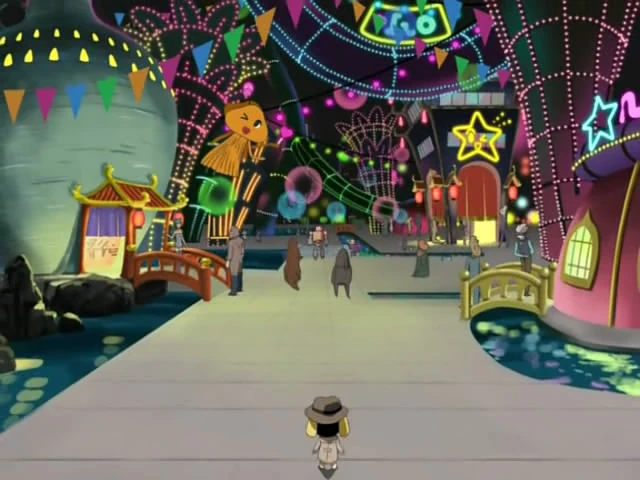 There's a segregated district which forbids the entrance of minors through an automatic barrier in its entrance. It's a darker badly lit area, although with many neon lights spread around it. Criminals and low life aliens often can be seen here, like Sayuri, Space Criminal 303 and Mecha Viper.
