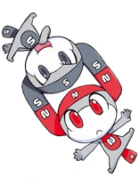 Esusu and Enunu's names have the same vowel letters, except the consonant letters, as the magnet's north and south parts. Esusu is for south while Enunu is for north.