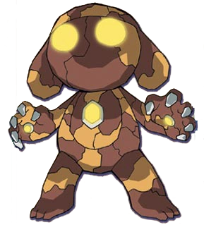 Goruru is a sand golem Keronian. He is made up of brown and yellowish sand. He has razor claws. His symbol is a gold glowing hexagonal crystal. Unlike other Keronians, he lacks the symbol on his cap. Instead he holds it at the center of his chest and palms. He has golden glowing eyes.