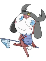 Kuwawa is a dark red Keronian tadpole, with a dark gray hat that has beetle mandibles on the top. His emblem is a yellow mandible. His eyes are blue, and he carries a light blue beetle backpack with red eyes.