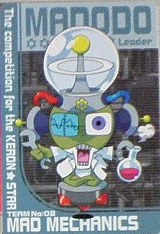 Madodo is a dark yellow green Keronian wearing a white lab coat. His appearance is covered in mechanical parts such as a sphere glass on his head with an antenna inside it, black horns for ears with a red wire on the right, and a blue one on the left. He has square-shaped eyes, his pupil is purple on the left, while his right eye is cybernetic.