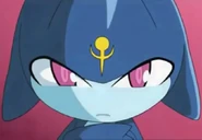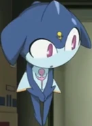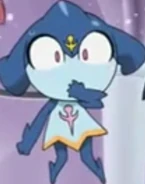 Maru is a dark blue Maronian. She is a lighter blue than Meru. Her crest on her head is shorter and longer ear-like flaps on her helmet. Like Meru, her symbol is the Maron emblem on her forehead and another one on her dress but its colored pink instead of yellow, and has shark-like fins on her wrists and limbs. Her skirt is jagged, and sky blue that matches the same color of her face and belly and orange lines on the lower part of the skirt. Maru's eyes, are larger and rounder shape like a teardrop. Her irises are similar to Meru's and Alisa Southerncross's and its colored magenta.