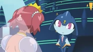 Meru and Maru didn't forget who they are and where they come from. Like the Keroro Platoon, they came to Pekopn to invade. They found Kiruru in the bottom of the sea and used it as the ultimate weapon. Meru doesn't scold Maru much like in the movie, they are like partners. As a servant, Maru does worry about Meru's safety, especially when Kiruru X02 had loses control and traps Meru.