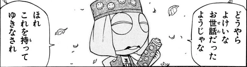 Namumu is an adult Keronian appeared in the manga. Namumu appears to resembling a Chinese chief. Namumu is also the first male Keronian ability to transform into a human.