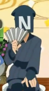 The Narrator is shown wearing a traditional Kuroko outfit, often used for people who work on stages, and his mask has an N for Narrator.