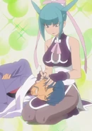 Oka is a very talented fighter. She held a martial arts competition where suitors have to defeat her. Only Baio was able to defeat her, and she later married him and had a child, namely Momoka.