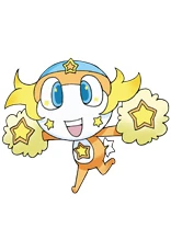 Rakiki is a yellow Keronian wearing a blue cap with three jagged hair-like hat flaps. She has yellow fluffy Pom poms on her hands with star patterns on it and she has star patterns on her cheeks similar to Beriri's. Her eyes are aqua with yellow stars on her each sclera and her symbol is a star similar on her Pom poms. Her tail is resembling a star.